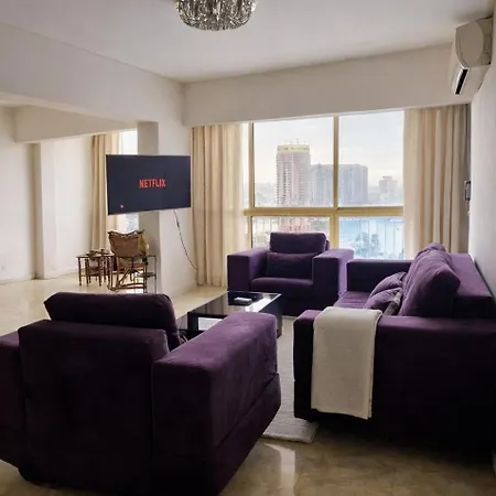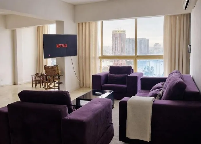The spacious 1-bedroom Central Apartment With A Panoramic View Over Cairo is approximately 25 minutes' walk from Giza Zoo.